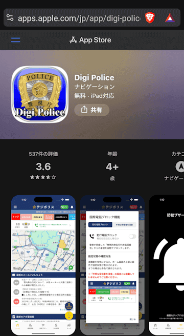 このアプリは「デジポリス」と言い、警視庁が公式に提供している無料の防犯アプリで、AndroidとiOSで利用できます。