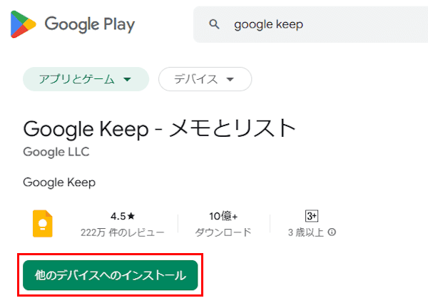 「Google Keep メモとリスト」にアクセスしてインストールします。