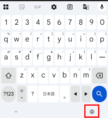追加した複数のキーボード配列は切り替えて使うことができます。以下に示す画像のようにキーボード右下にある「地球儀アイコン」(言語切り替えキー) をタップして、切り替えたいキーボード配列を選択します。