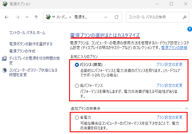 Windows 10やWindows 11では、PCの消費電力と性能バランスの均衡を保つために、「バランス(推奨)」「省電力」「高パフォーマンス」といった電源プランが標準で用意されています。